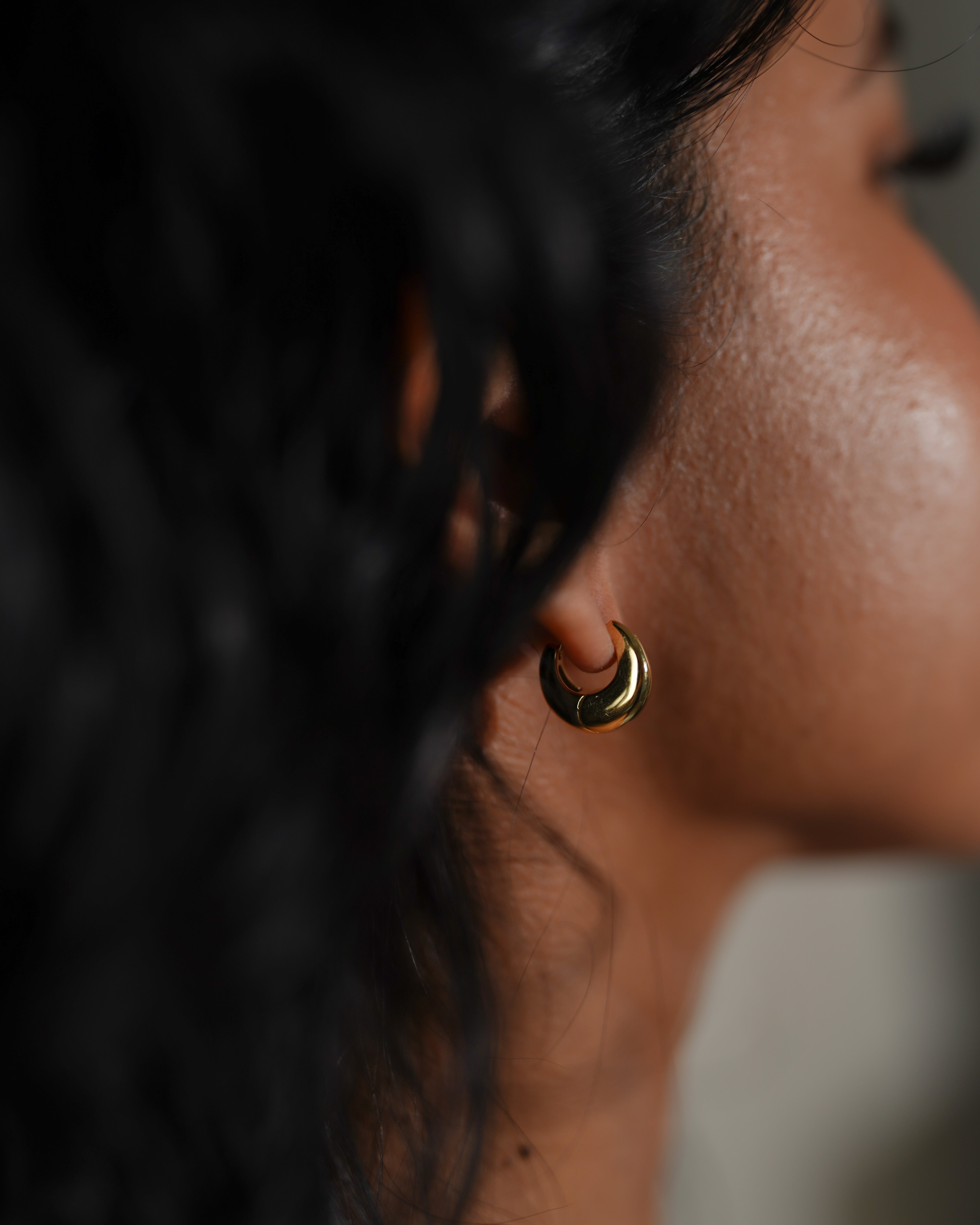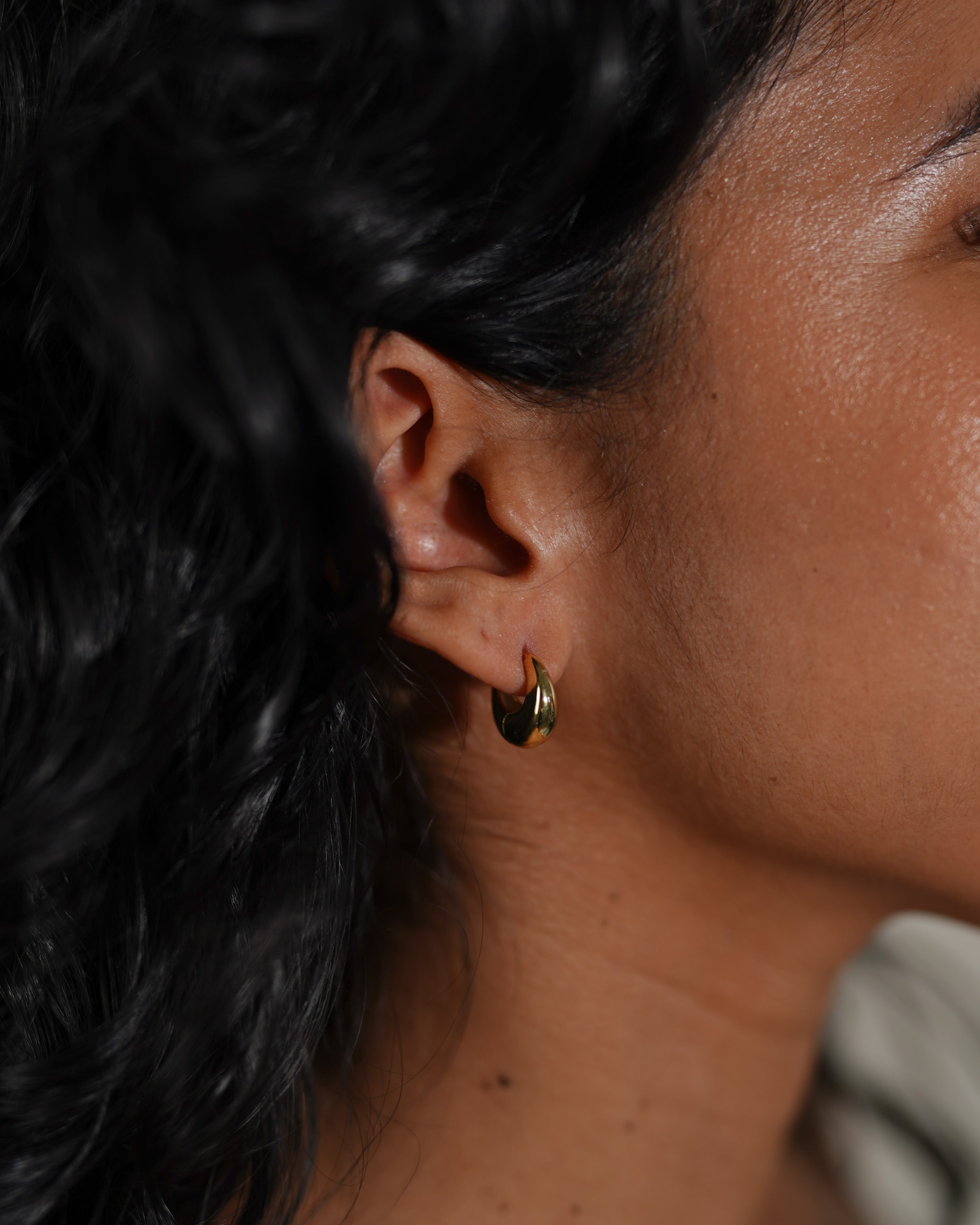 These petite gold earrings resemble droplets of water creating a soft and unwavering silhouette for your ear party. These simple and dainty earrings are great for everyday wear and to compliment any outfit.